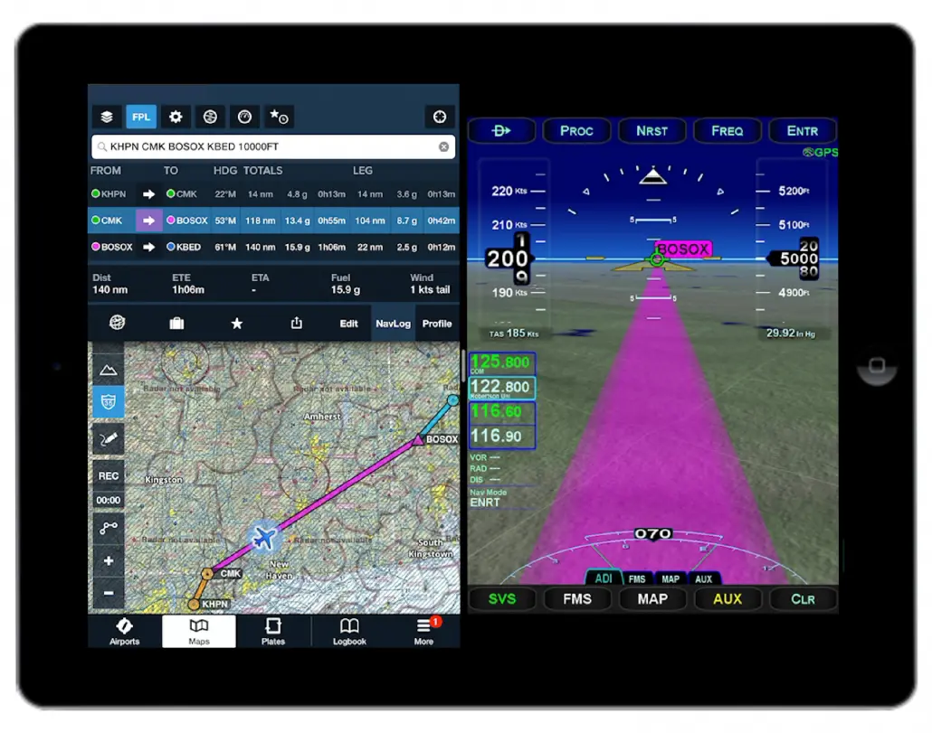 Avidyne IFD100 App can now run at the same time and share data with other iPad apps that support multi-tasking, including ForeFlight and SkyDemon.