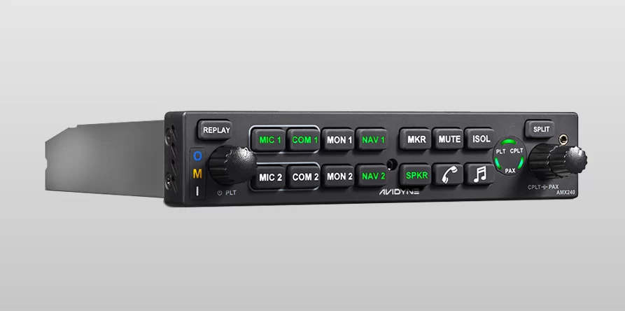 Avidyne’s AMX240 Audio Panel provides the latest features in audio management for general aviation aircraft in a simple, easy-to-use design that includes a full-featured audio source selector panel, intercom, and marker beacon receiver. You love the outstanding sound quality and large, easy-to-read, LED backlit buttons – providing simple mode selection and at-a-glance annunciation of your current audio and intercom configuration.