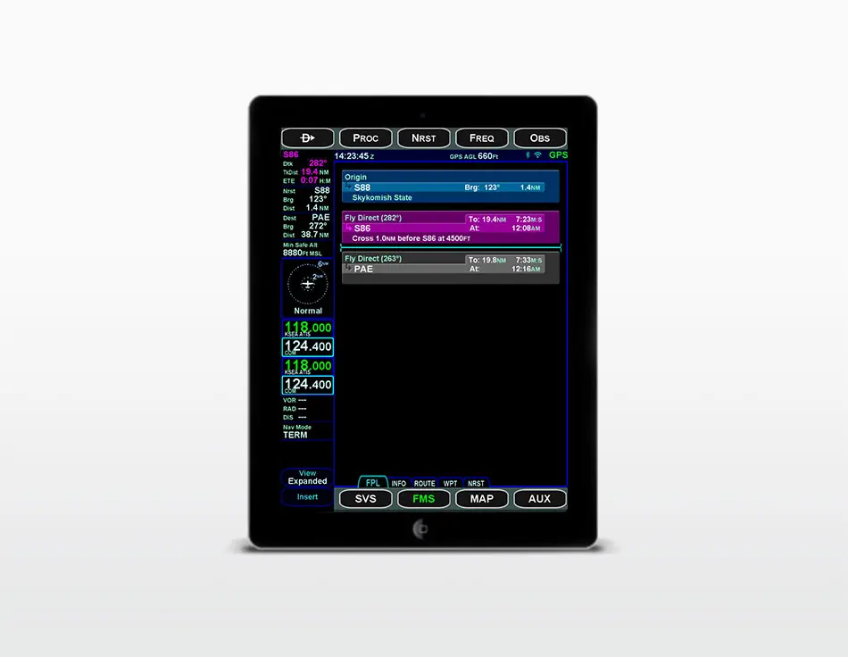 Avidyne’s IFD-Series are the only FMS/GPS Navigators in aviation offering both built-in Bluetooth® and WiFi and connects seamlessly to your iPad via the IFD100 iPad app. Best of all, your iPad does far more than just mirror your Avidyne IFD – it acts as an additional instance of your IFD, where you can edit your flight plan, and even monitor your map for ADS-B weather & traffic (when equipped). For truly enhanced functionality, you can even view pages independently of your flight deck mounted IFD.