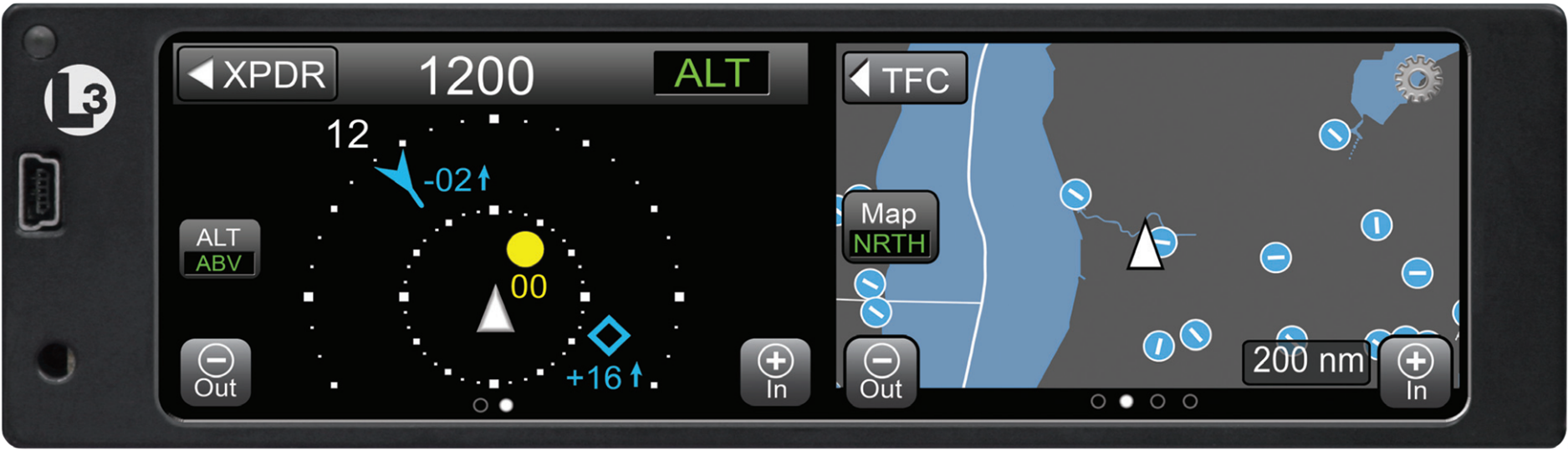 - 978 / 1090 MHz dual-band receiver provides traffic and weather
